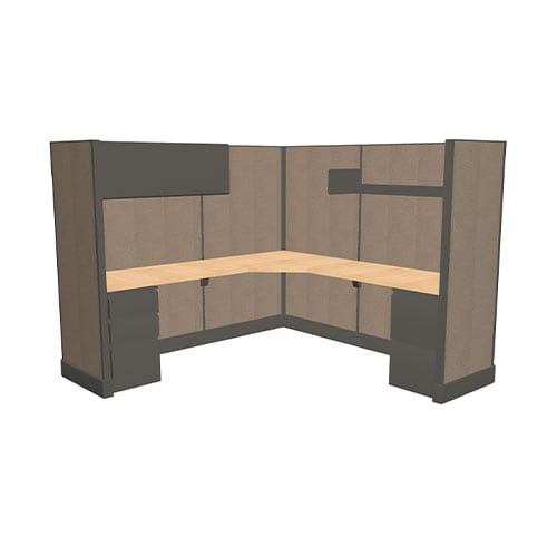 This large-sized office cubicle is 7 feet wide by 8 feet deep, fit for managers or employees who require more work space. The 67 inch high panels allow for visual privacy when standing or sitting down in the cubicle. The cubical storage consists of a box-box-file pedestal, a 30 inch lateral File, a 4 feet half-height shelf, and a 5 feet overhead bin. This cubicle comes with 6 color palette options with installation service options available as well.